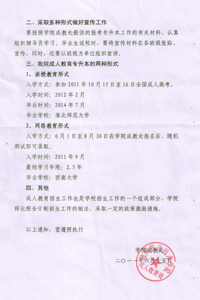 关于组织2011届高职毕业生报考第二学历(专升本)有关工作的通知